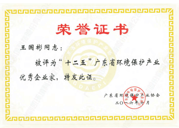 “十二五”廣東省環(huán)境保護產業(yè)優(yōu)秀企業(yè)家