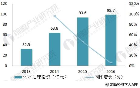 2013-2016年中國農(nóng)村污水處理投資情況