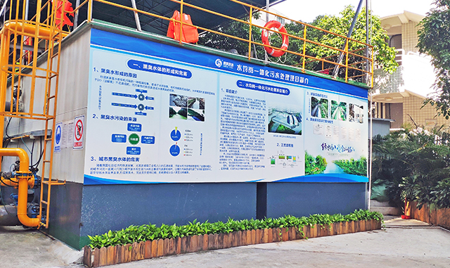 【工程概況】水均崗涌是沙河涌的支流,長330米,上游為污水渠箱,沒有清水水源,每當(dāng)下雨泄洪時(shí),為保障排澇安全,污水渠箱內(nèi)的雨污合流水排入河道泄洪,河涌水質(zhì)受到污染。為消除水體污染,改善河涌水生態(tài)環(huán)境,開展了水均崗一體化污水處理項(xiàng)目。