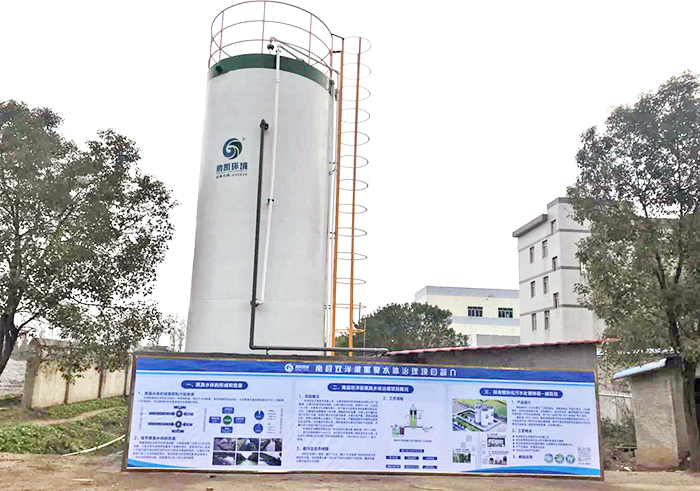 本項目位于南縣雙洋渠上游,水渠西側(cè)緊鄰陳克明食品有限公司廠區(qū)圍墻,水渠北向緊鄰桂花園路。水渠長度約200米,寬度約15米,水深約1.5-2米。水渠來水為收集的雨水、地下滲水以及周邊未完全截污的生活污水,水渠溢水經(jīng)暗管排入雙洋渠。隨著城市的發(fā)展,水渠上游大量的生活污水進入水渠,導致水渠水生態(tài)系統(tǒng)崩潰,水質(zhì)污染嚴重,演變成黑臭水體。雨季水渠黑臭水大量進入下游雙洋渠,嚴重影響到雙洋渠周邊居民的生活環(huán)境。為改善該水體水質(zhì),消除黑臭水對周邊環(huán)境的不良影響,開展對該水體進行截污及生態(tài)治理。項目采用鵬凱環(huán)境立式一體化污水處理設備-鵬凱塔(PKT-MBR),設計處理規(guī)模為150m3/d。設計進水水質(zhì)參考一般生活污水水質(zhì),出水執(zhí)行《城鎮(zhèn)污水處理廠污染物排放標準》(GB18918-2002)一級 A 標準。