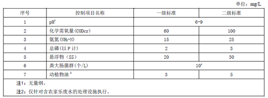 2015年7月,浙江《農(nóng)村生活污水處理設施水污染物排放標準》發(fā)布實施,規(guī)定農(nóng)村生活污水排放必須達到規(guī)定的排放標準。《標準》確定了pH值、化學需氧量、氨氮、總磷、懸浮物、糞大腸菌群、動植物油等7項主要控制指標及限值,詳情如下: