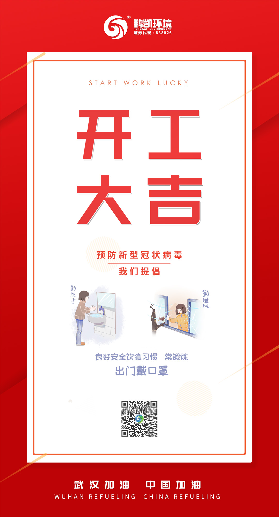 開工大吉!新年新氣象,萬事開門紅。2020新目標、新征程,不忘初心,砥礪前行,開啟鵬凱環(huán)境環(huán)保事業(yè)新篇章!
