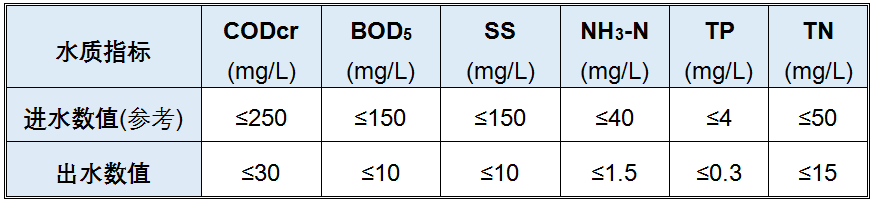本污水處理站主要處理的是生活污水(附近管網(wǎng)污水+工廠宿舍污水,不含工業(yè)廢水),結(jié)合建設(shè)單位提供資料及常規(guī)生活污水水質(zhì),本項(xiàng)目設(shè)計(jì)進(jìn)出水水質(zhì)如下表: