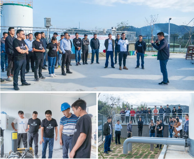 鵬凱環(huán)境項(xiàng)目中心團(tuán)隊(duì)圍繞土建施工、設(shè)備安裝與調(diào)試、工藝管道施工、電氣工程施工等各個(gè)施工環(huán)節(jié)進(jìn)行系統(tǒng)性的學(xué)習(xí)培訓(xùn)。并通過對(duì)肇慶市德慶縣PPP污水處理工程項(xiàng)目現(xiàn)場(chǎng)的參觀學(xué)習(xí),更全面、更深入地了解“鵬凱圓”、“鵬凱塔”、“鵬凱箱”設(shè)備的結(jié)構(gòu)特點(diǎn)、工藝流程、安裝調(diào)試常見問題等內(nèi)容。