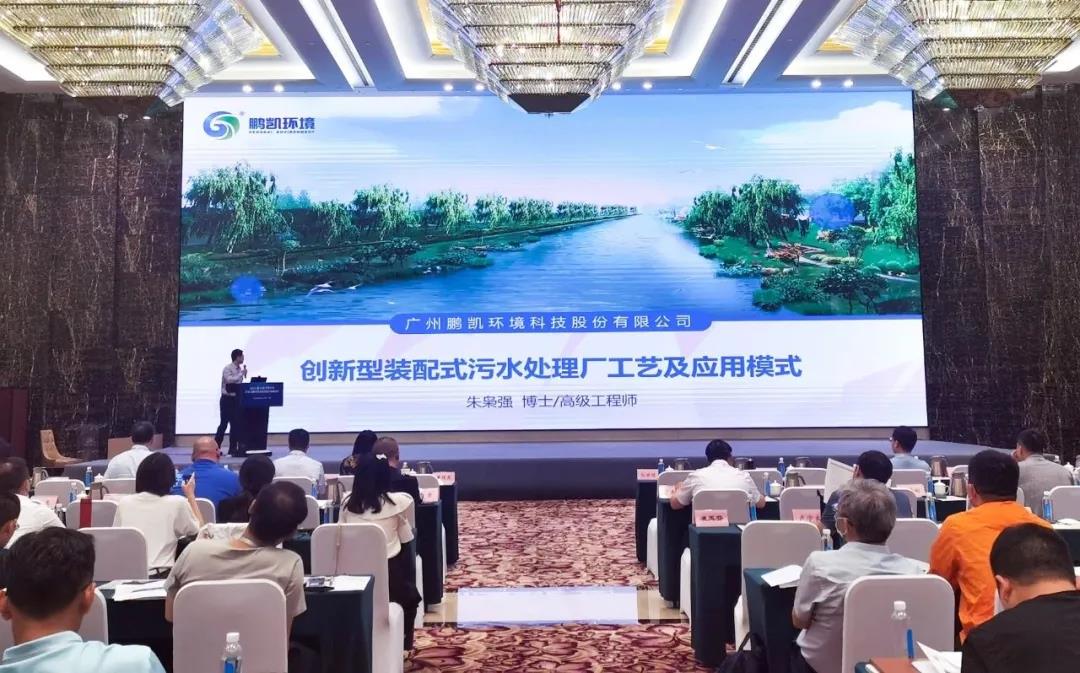 鵬凱環(huán)境朱梟強博士作為協(xié)辦單位代表出席此次論壇,并就《創(chuàng)新型裝配式污水處理廠工藝及應(yīng)用模式》進行專題演講,并重點介紹了鵬凱圓-低碳高效裝配式污水廠。