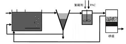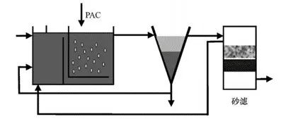 方式一工藝最簡單,投資費用最低,后續(xù)濾池的設置可以保證出水水質,降低 PAC 流失,但這種工藝的 PAC投加量最高;