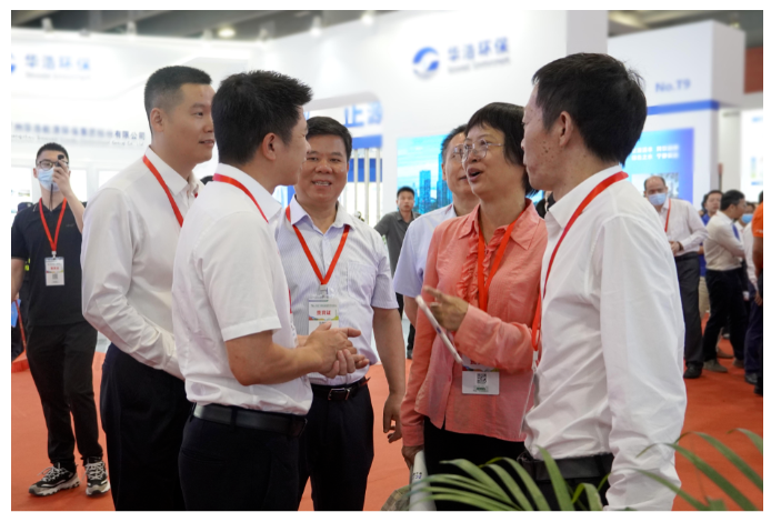 開幕式結(jié)束后,出席博覽會開幕式的領(lǐng)導(dǎo)貴賓、廣東省環(huán)境保護產(chǎn)業(yè)協(xié)會榮譽會長區(qū)岳州先后蒞臨鵬凱環(huán)境展位參觀指導(dǎo)。通過現(xiàn)場充分溝通與交流,參觀領(lǐng)導(dǎo)一行深入了解鵬凱環(huán)境前沿技術(shù)產(chǎn)品及創(chuàng)新解決方案,對我司聚焦裝配式污水處理系統(tǒng)細分市場,堅定不移走技術(shù)產(chǎn)品化之路給予了認可,并勉勵我司瞄準關(guān)鍵核心技術(shù)問題,加大科技攻關(guān)力度,持續(xù)提升科技創(chuàng)新力、成果轉(zhuǎn)化力、核心競爭力,為生態(tài)環(huán)境保護工作貢獻更大的力量。