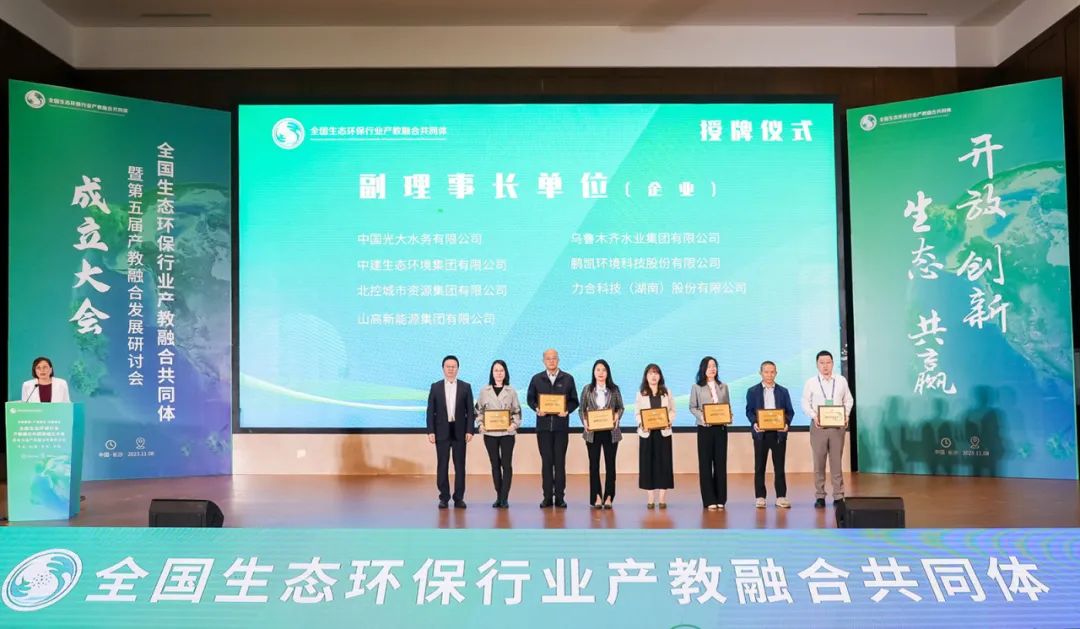 會(huì)上審議并通過(guò)了《全國(guó)生態(tài)環(huán)保行業(yè)產(chǎn)教融合共同體章程草案》,表決通過(guò)了第一屆理事會(huì)名單, 向1家理事長(zhǎng)單位、2家常務(wù)副理事長(zhǎng)單位、22家副理事長(zhǎng)單位、32家常務(wù)理事單位、103家理事單位授牌,鵬凱環(huán)境榮獲“全國(guó)生態(tài)環(huán)保行業(yè)產(chǎn)教融合共同體副理事長(zhǎng)單位”授牌。
