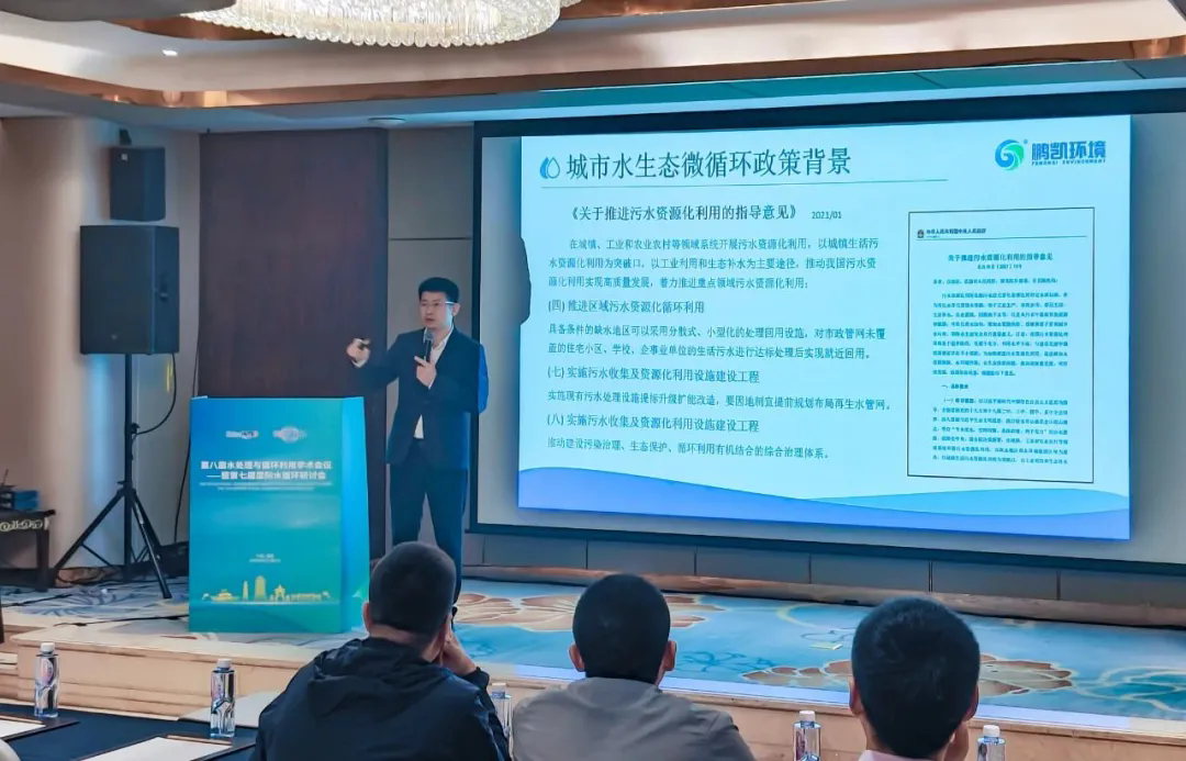 在專精特新企業(yè)水處理技術(shù)沙龍上,鵬凱環(huán)境董事長(zhǎng)兼總裁王國(guó)彬作《城市水生態(tài)微循環(huán)系統(tǒng)》主題演講,深度剖析了當(dāng)前我國(guó)城市水處理面臨的污水處理能力欠缺,管網(wǎng)建設(shè)瓶頸、管網(wǎng)維護(hù)困難、運(yùn)維成本居高不下及水資源再生回用率低下等現(xiàn)實(shí)問(wèn)題。并針對(duì)上述難題,提出了城市水生態(tài)微循環(huán)系統(tǒng)解決方案,以實(shí)現(xiàn)城鎮(zhèn)污水高效治理與再生水資源化利用。