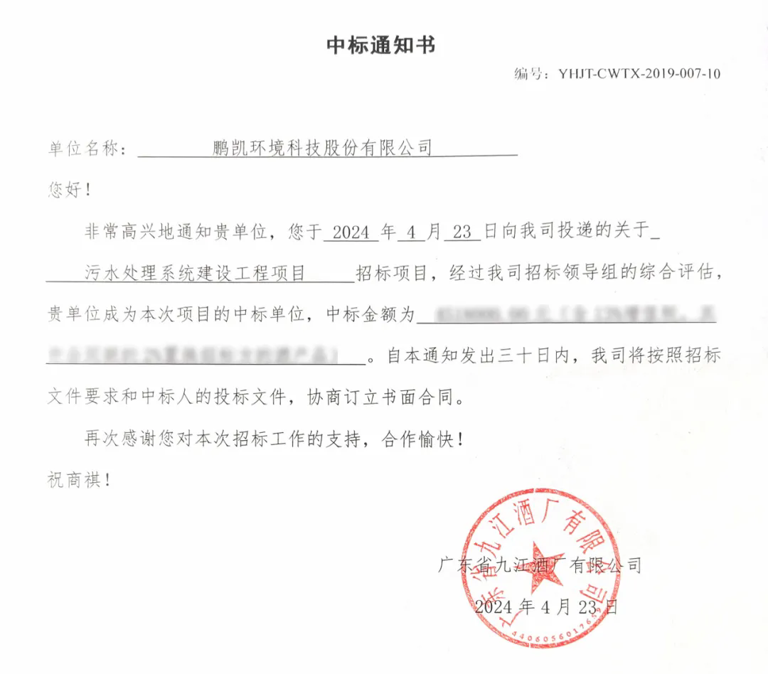 精益求精展實(shí)力,勠力同心鑄佳績。鵬凱環(huán)境憑借卓越的技術(shù)實(shí)力與豐富的實(shí)踐經(jīng)驗(yàn),成功中標(biāo)廣東省九江酒廠有限公司污水處理系統(tǒng)建設(shè)工程項目。此次中標(biāo)不僅意味著鵬凱環(huán)境成功涉足豉香型酒類廢水處理領(lǐng)域,拓寬了不同香型酒類廢水處理的服務(wù)范疇,更標(biāo)志著我司在多元化酒類廢水處理技術(shù)層面上實(shí)現(xiàn)了重要的能力提升與實(shí)質(zhì)性的戰(zhàn)略拓展。