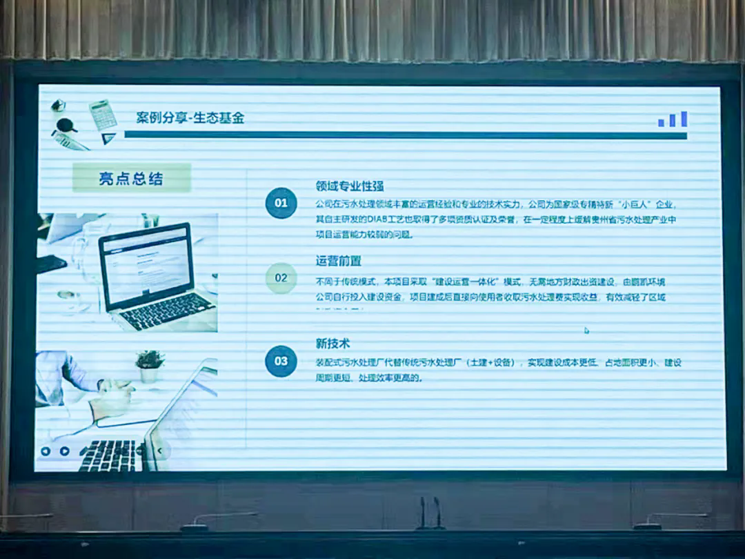 尤為值得一提的是,會(huì)議第二階段的亮點(diǎn)——貴州省貴鑫瑞和公司專家分享的“四化”基金投資成功案例中,特將遵義鵬凱環(huán)境的貴州遵義余慶縣河?xùn)|綜合片區(qū)(白泥產(chǎn)業(yè)園)污水處理廠項(xiàng)目作為典范案例向全場展示。該項(xiàng)目的成功實(shí)施,不僅展示了鵬凱環(huán)境在技術(shù)創(chuàng)新、項(xiàng)目管理及環(huán)境治理方面的雄厚實(shí)力,更為與會(huì)領(lǐng)導(dǎo)、企業(yè)家們提供了寶貴的經(jīng)驗(yàn)借鑒,彰顯了公司在助力地方經(jīng)濟(jì)發(fā)展與環(huán)境保護(hù)協(xié)同并進(jìn)中的積極作用。