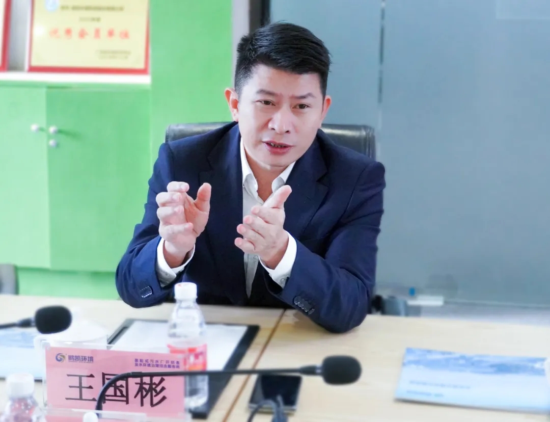 鵬凱環(huán)境董事長兼總裁王國彬首先對家鄉(xiāng)領(lǐng)導(dǎo)的到訪表示衷心的感謝。隨后就公司發(fā)展歷程、業(yè)務(wù)領(lǐng)域、核心產(chǎn)品與技術(shù)優(yōu)勢、以及近年來取得的顯著成就等情況做了詳細(xì)匯報。他表示,作為裝配式污水廠開創(chuàng)者、領(lǐng)導(dǎo)者,鵬凱環(huán)境始終秉持“科技引領(lǐng)、綠色發(fā)展”的理念,專業(yè)從事高效低碳水環(huán)境技術(shù)研究、水環(huán)境治理解決方案、水處理裝備專業(yè)智造。作為湘潭縣籍的企業(yè)家,始終心系家鄉(xiāng)發(fā)展,希望借助鵬凱環(huán)境在環(huán)保科技領(lǐng)域的技術(shù)優(yōu)勢,能為湘潭縣的生態(tài)文明建設(shè)貢獻(xiàn)力量。