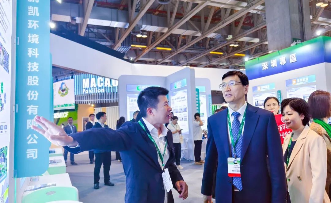 展會首日,廣東省人民政府副省長、副總林長張少康,廣東省人民政府副秘書長劉華偉,廣東省生態(tài)環(huán)境廳黨組書記、廳長徐曉霞,廣東省生態(tài)環(huán)境廳副廳長羅世衍,廣東省生態(tài)環(huán)境廳二級巡視員許金洲,廣州市生態(tài)環(huán)境局黨組書記、局長王保森,廣州市生態(tài)環(huán)境局黨組成員、副局長李新科,中國環(huán)境保護產(chǎn)業(yè)協(xié)會黨委書記、會長郭承站,廣東省環(huán)境保護產(chǎn)業(yè)協(xié)會會長麥建波等領導先后親臨鵬凱環(huán)境展位考察指導。鵬凱環(huán)境董事長兼總裁王國彬向巡展領導就我司生產(chǎn)經(jīng)營狀況,以及在低碳治水技術創(chuàng)新與轉化應用情況作了詳細匯報。