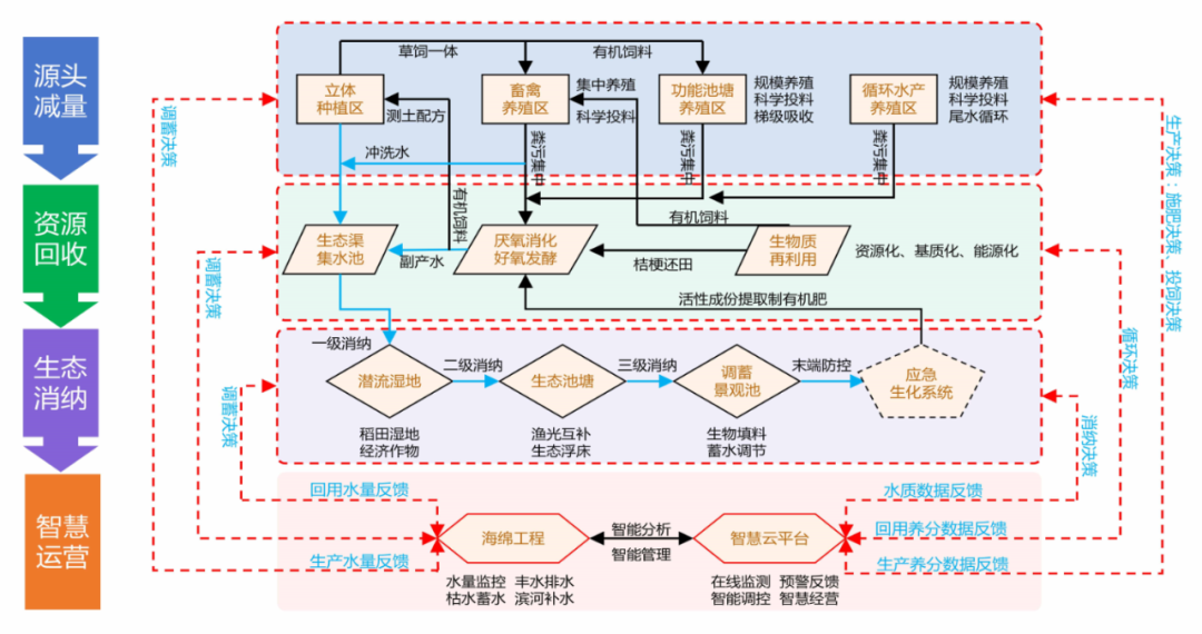 鵬凱環(huán)境遵循源頭減量、資源回收、生態(tài)消納與智慧運營的核心理念,致力于打造“種養(yǎng)結合、綠色高效、資源循環(huán)”現(xiàn)代綠色生態(tài)循環(huán)農(nóng)業(yè)模式,通過整合水產(chǎn)養(yǎng)殖、畜禽養(yǎng)殖、能源生產(chǎn)、農(nóng)作物種植及污水處理等多元業(yè)態(tài),實現(xiàn)了區(qū)域內資源的高效循環(huán)利用。