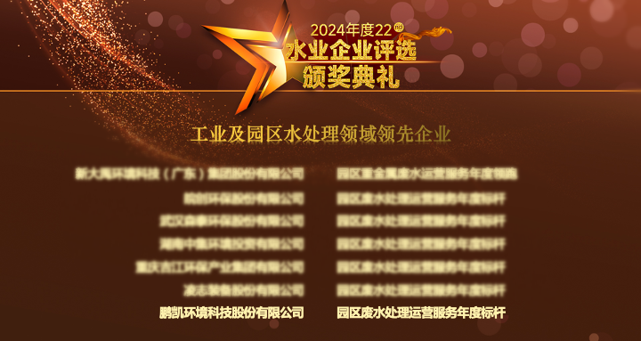 鵬凱環(huán)境憑借其在工業(yè)廢水處理領(lǐng)域的優(yōu)異表現(xiàn),榮膺“2024年度工業(yè)及園區(qū)水處理領(lǐng)域領(lǐng)先企業(yè)-園區(qū)廢水處理運(yùn)營(yíng)服務(wù)年度標(biāo)桿”獎(jiǎng)項(xiàng)。